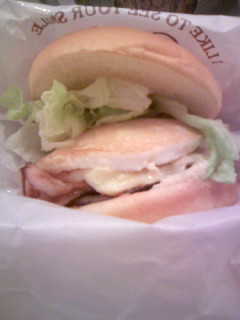 佐世保バーガービックマン ヨドバシ梅田コムサストア店にて腹ごしらえ。 ベーコンエッグバーガー注文。 アツアツで美味しい。 厚みもすごいので食べるの必死(汗) 潰しながら大口開けて食べましたよ~(恥) サイドメニューのポンチーズも美味しいね! |