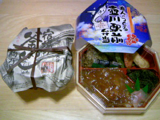 長野県の駒乃屋五目釜飯、 海ぶどうの誘惑に負けた私は 沖縄県の海人がつくる壺川駅前弁当購入。 海ぶどうはもちろん! もずくの天ぷらやカジキマグロのヅケのお弁当で美味しかった~。 こちらのお弁当毎年リニューアルしてるみたいです。 NHK大河ドラマ天地人を見る度